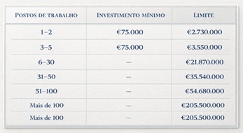 • Opção 1: Criação de um a cinco postos de trabalho a tempo inteiro (os postos de trabalho devem ser residentes, para efeitos fiscais, na Madeira) nos primeiros seis meses de funcionamento e com investimento mínimo de € 75.000 (na aquisição de ativos, tangíveis ou intangíveis), nos primeiros dois anos de operação;